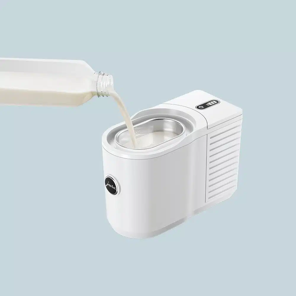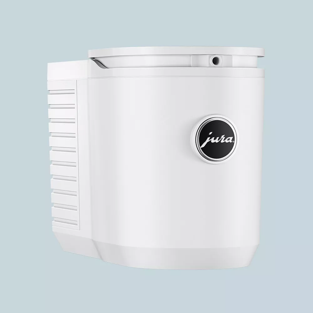 Glæd dig til fantastiske mælkespecialiteter med denne hvide Jura Cool Control (EB) mælkekøler.