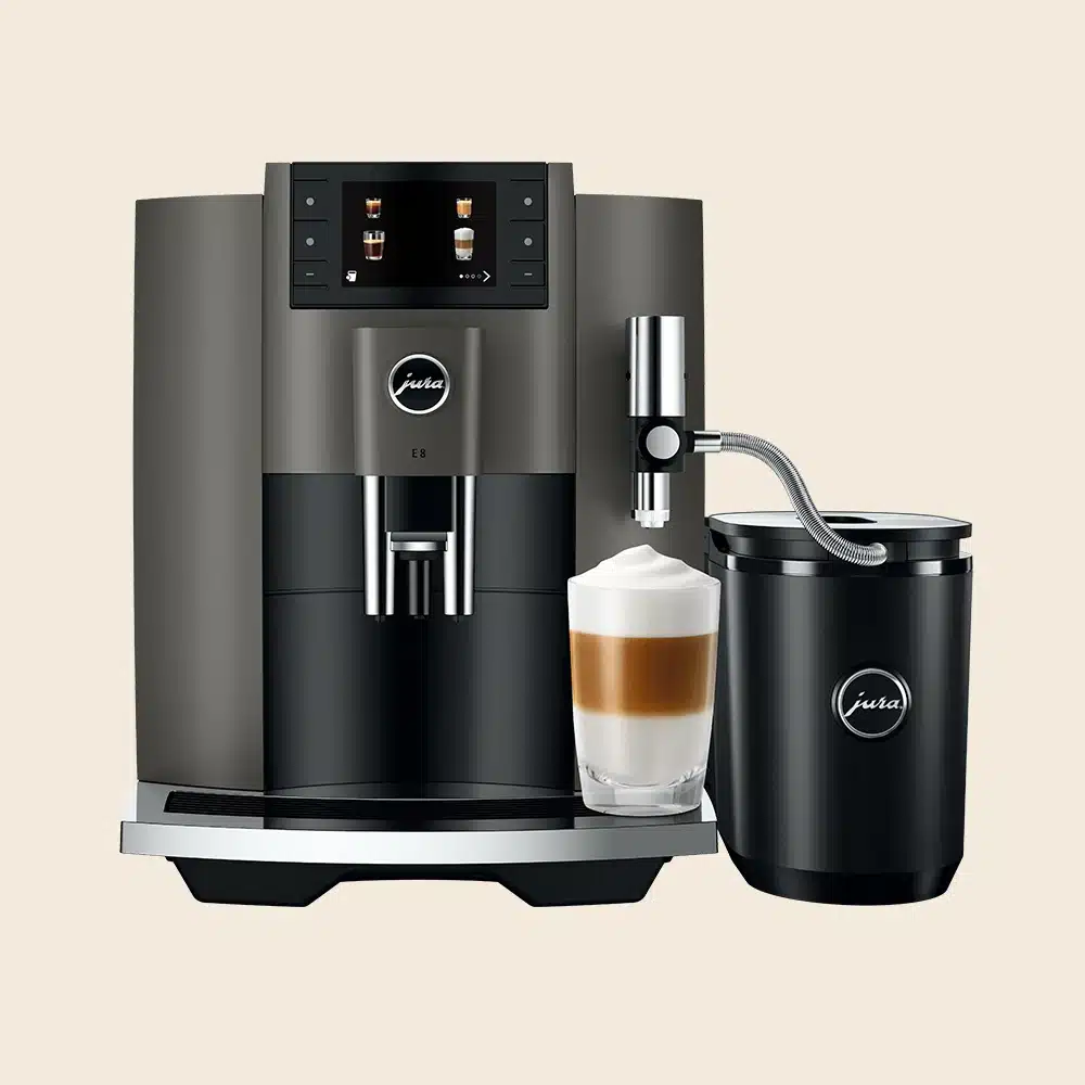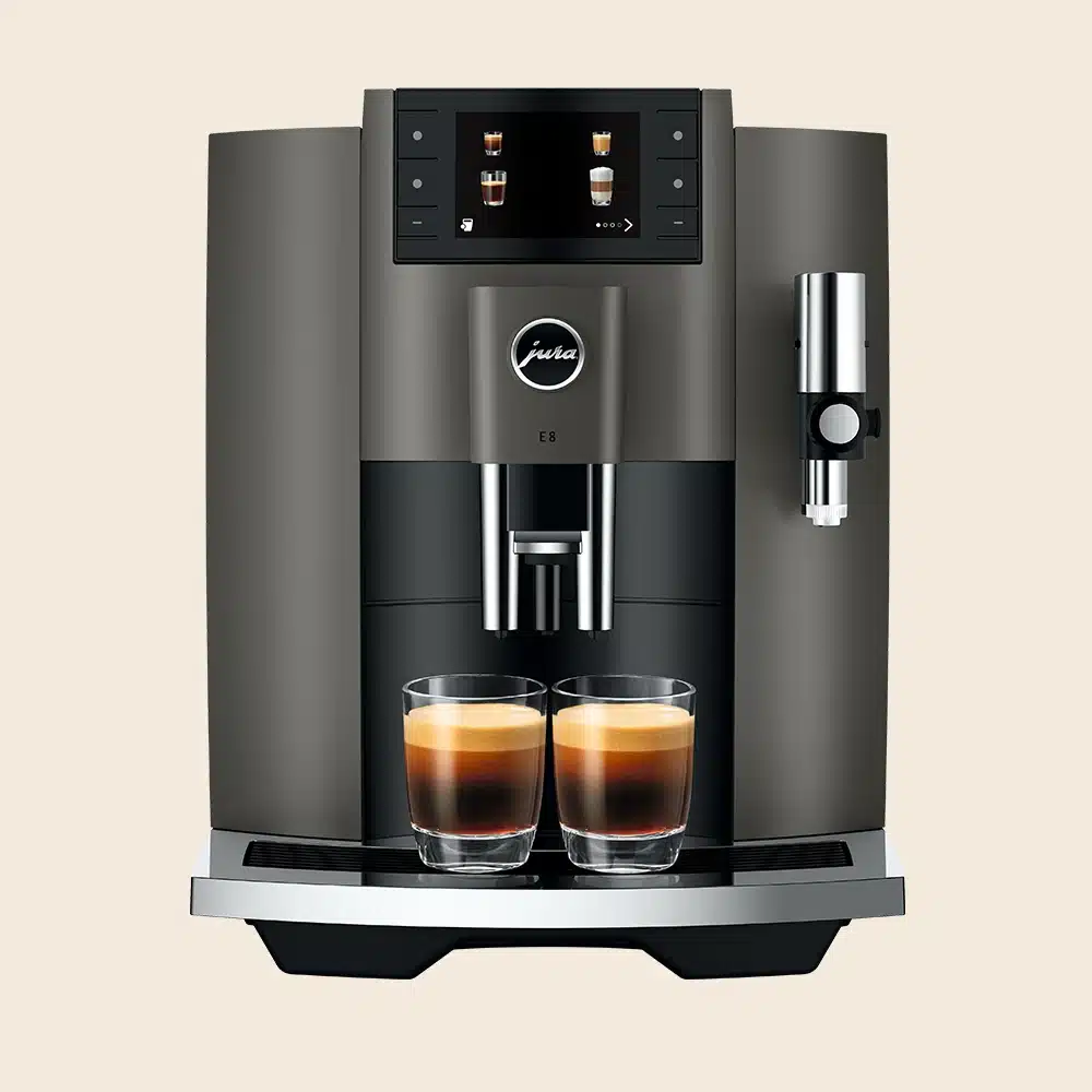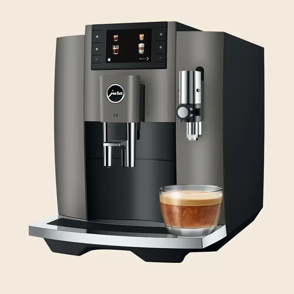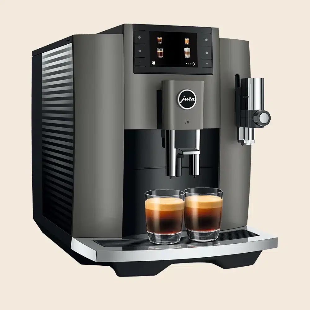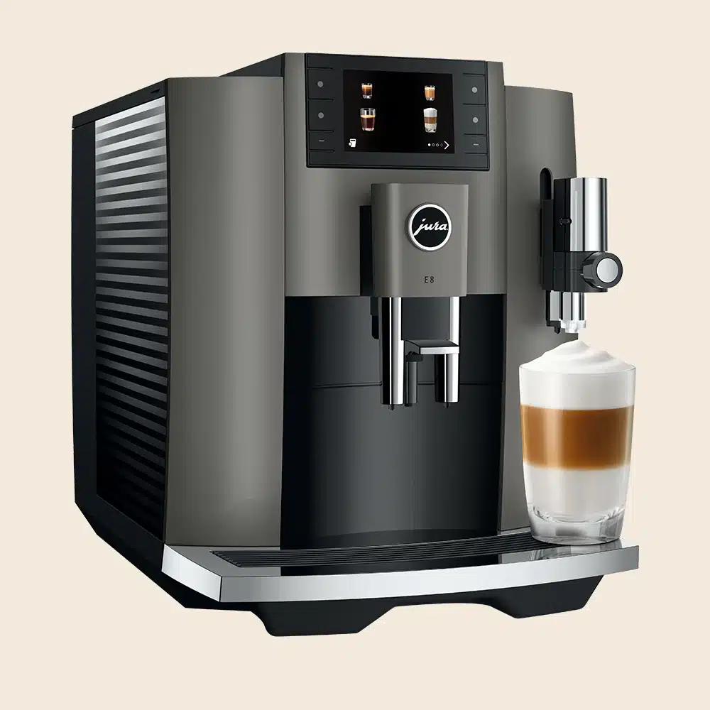 Den populære Jura E8 (EC) er Juras mest solgte espressomaskine til privat brug. Med sit strømlinede design, brugervenlige display og gennemførte kvalitet er den en af de bedste fuldautomatiske espressomaskiner til prisen.