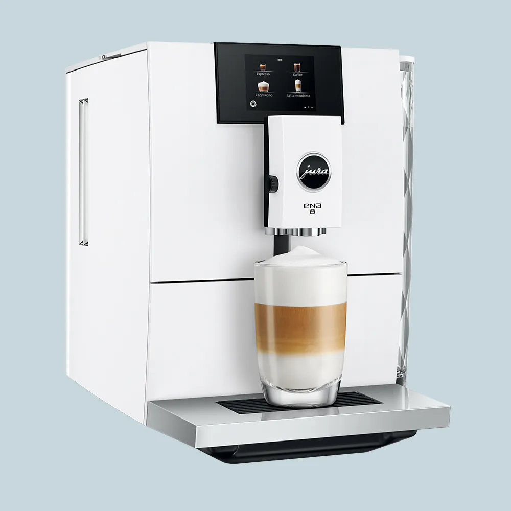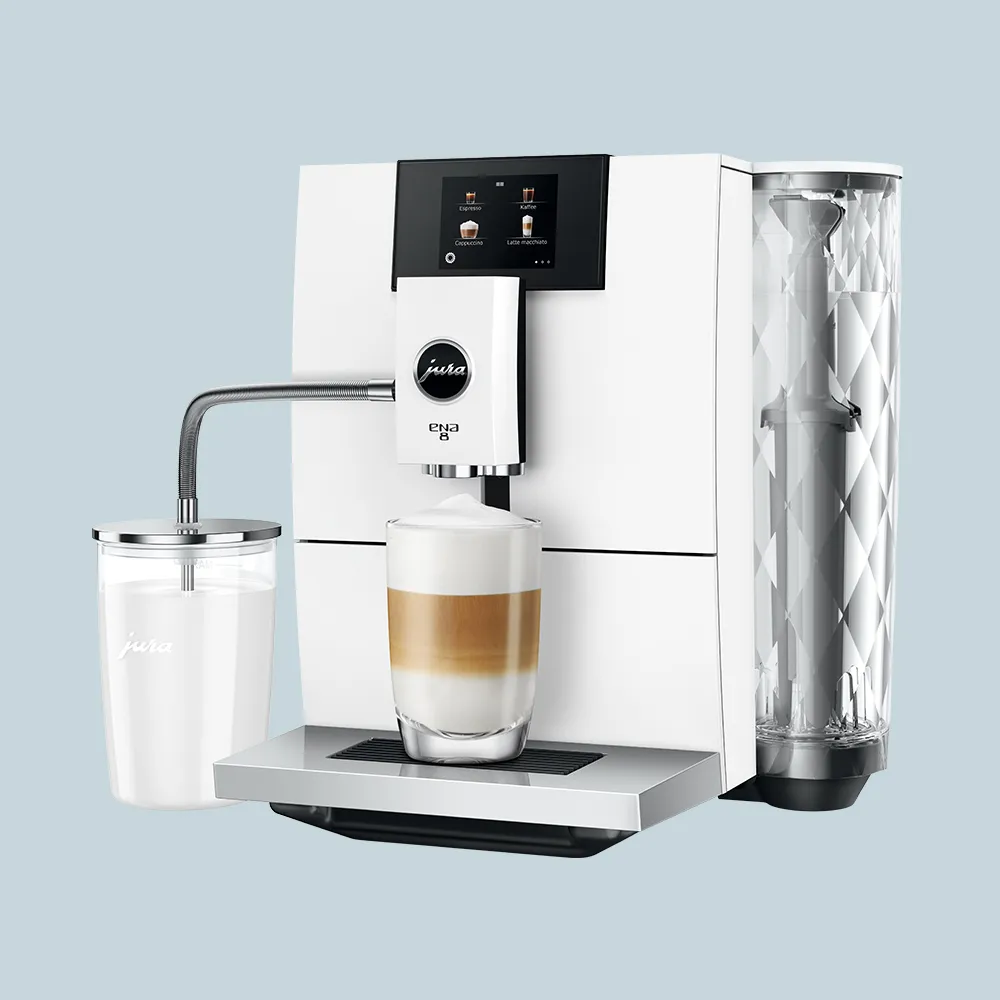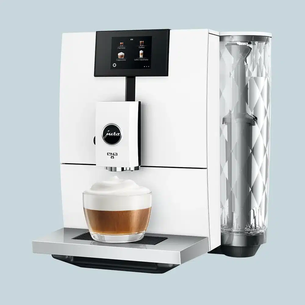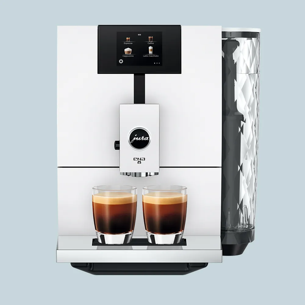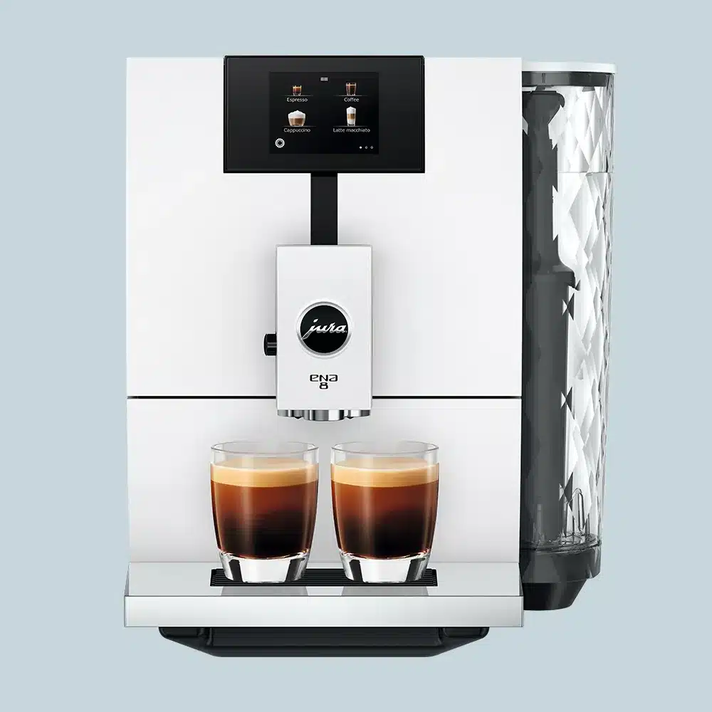 Den nye Jura ENA 8 (EC) er en opdateret version af den klassiske ENA 8. Du får nu den helt særlige “Professionel Aroma Grinder” kværn i din maskine og to kaffeudløb i stedet for et enkelt. Det betyder at du kan lave to kopper kaffe samtidig.