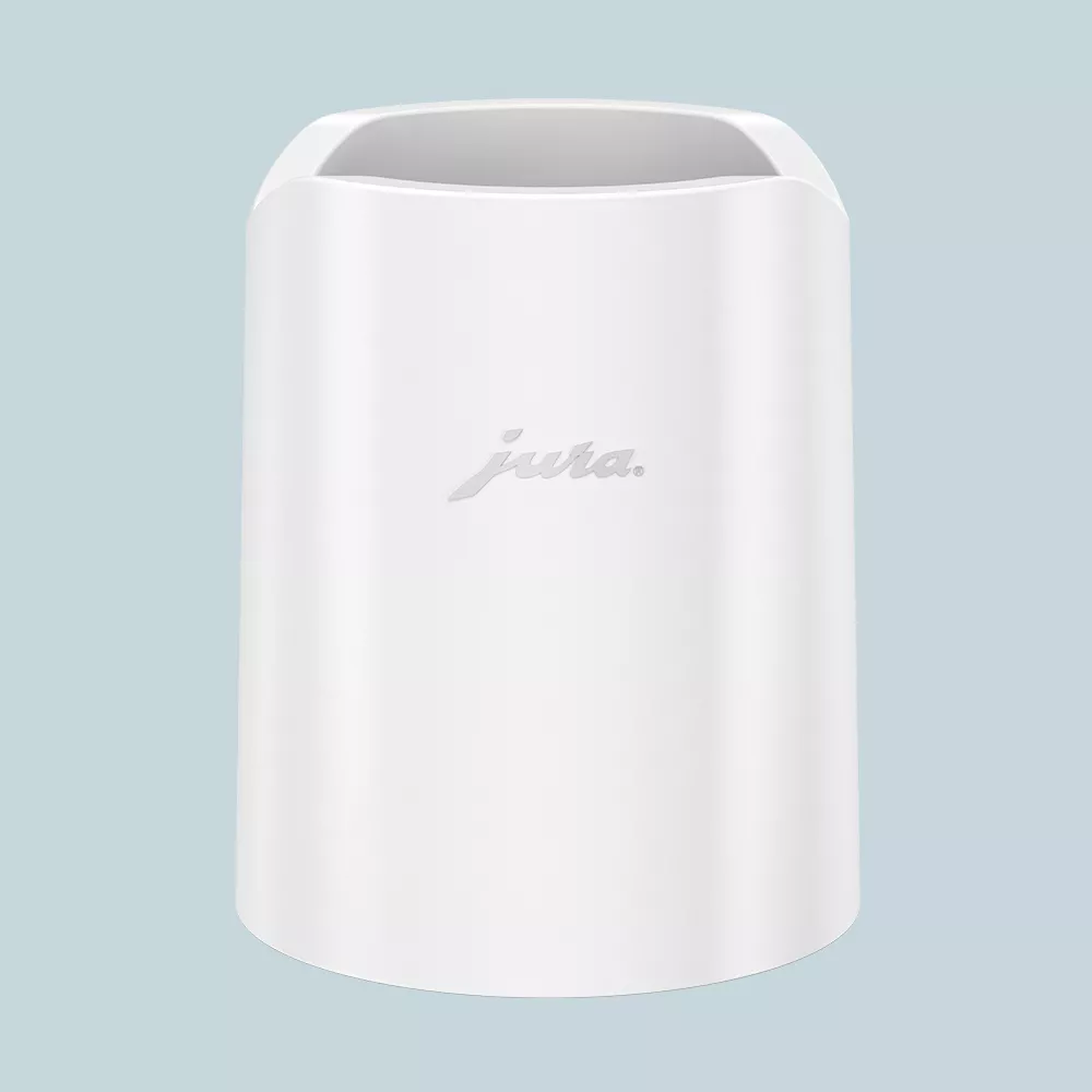 Den ideelle kompagnon til Juras glasmælkebeholder (findes også her på shoppen). Den fåes i sort og hvid, så du får det rette look, som passer til din Jura kaffemaskine.