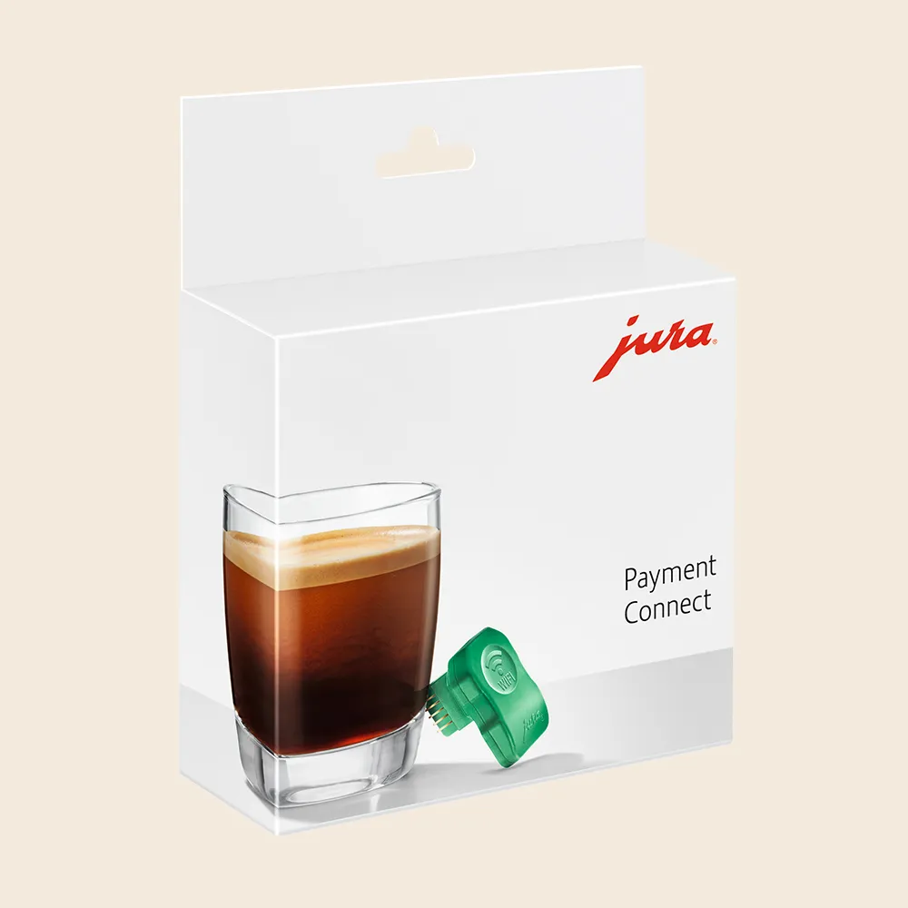 Med denne enhed er mobilbetaling og central administration af Jura’s professionelle kaffemaskiner nemmere end nogensinde før. Payment Connect muliggør forbindelse mellem den fuldautomatiske kaffemaskine og en mobil enhed. Systemet anvendes sammen med Jura Pocket Pilot 2.0, som er gratis, webbaseret og ikke kræver nogen softwareinstallation.