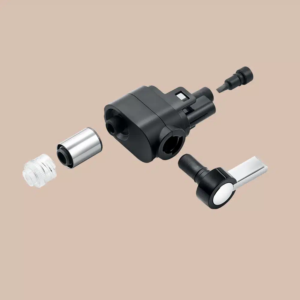 Opskummeren monteres direkte på espressomaskinen og mælken trækkes automatisk via en slange fra mælkekartonen eller fra mælkekøleren.