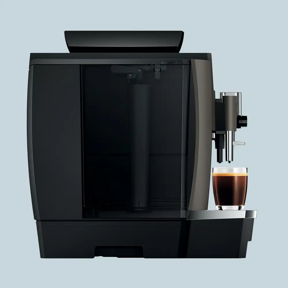 Med sin kompakte konstruktion, lige linjer og den sofistikerede Dark Inox-farve, passer Jura W8 perfekt ind i ethvert kontormiljø. Det tidløse og æstetiske design gør den ikke kun til en praktisk løsning, men også til et elegant element på kontoret.