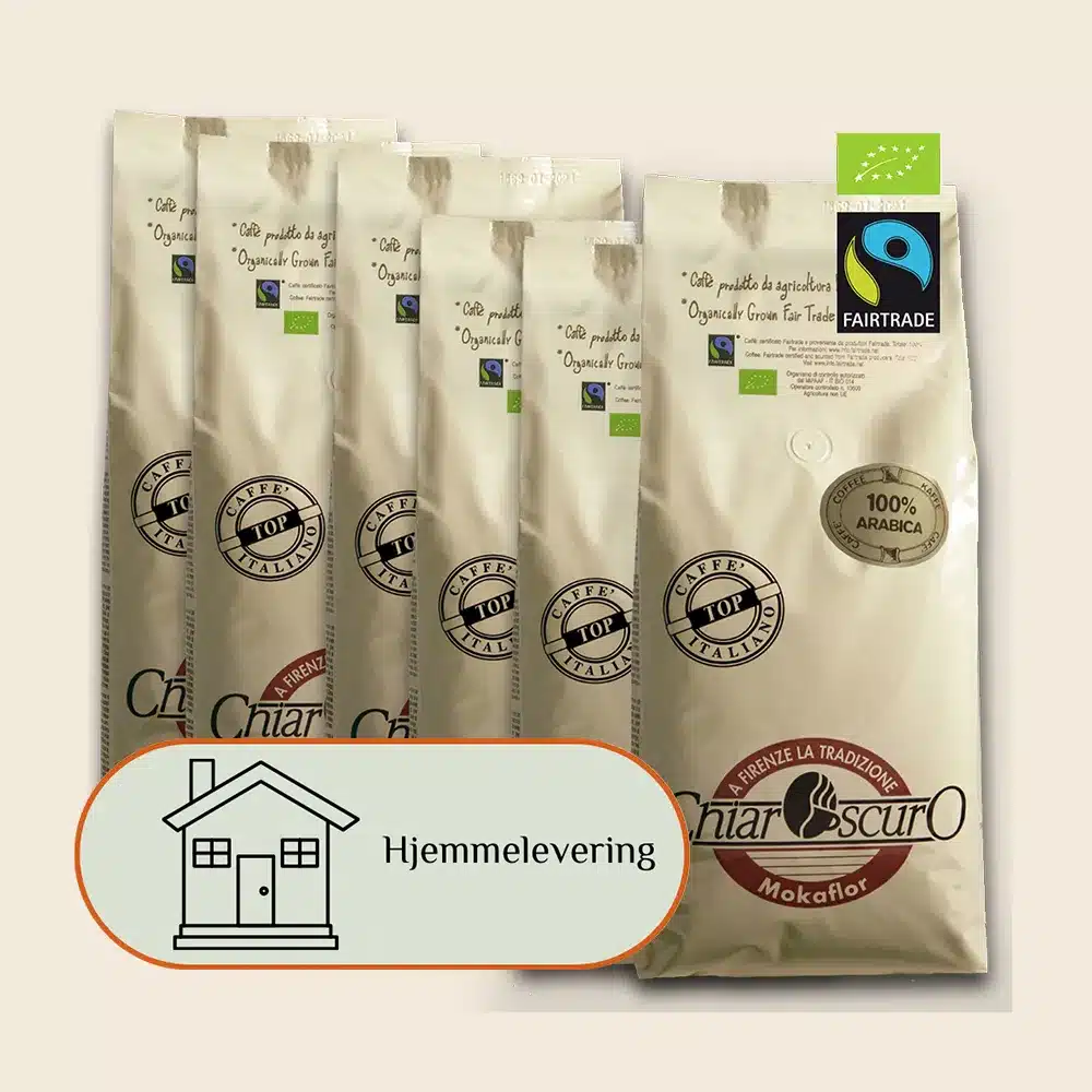 Med et kaffeklip til hjemmelevering får du 3 gange tilsendt 2 kilo friskristet kaffe til din hjemmeadresse. Vi sender første omgang, når du bestiller kaffeklippet, og du bestemmer selv, hvornår vi skal sende de næste. Du skriver bare til os på info@moccatime.dk, når du har brug for mere kaffe.