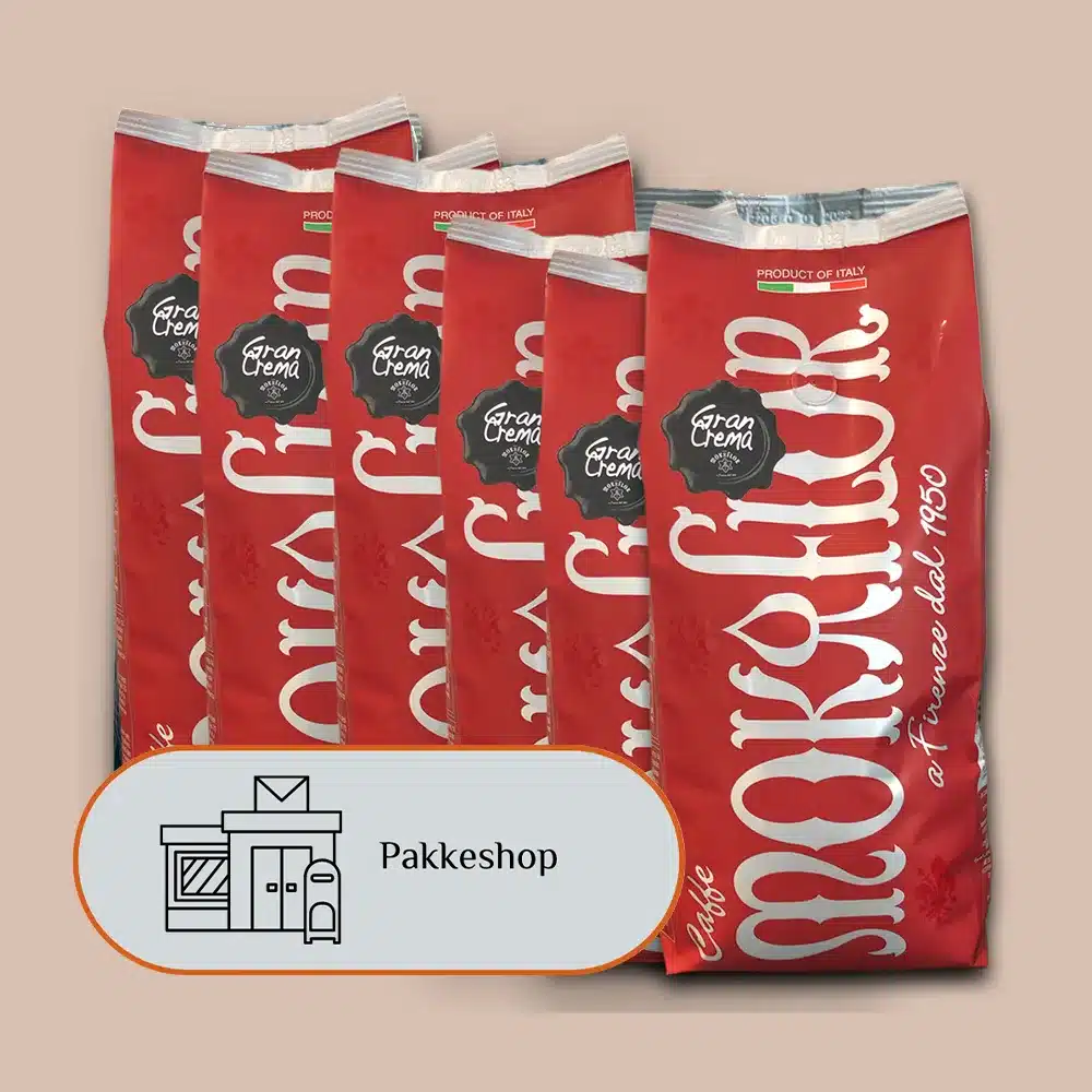 Med et kaffeklip til pakkeshop får du 3 gange tilsendt 2 kilo friskristet kaffe til en selvvalgt pakkeshop. Vi sender første omgang, når du bestiller kaffeklippet, og du bestemmer selv, hvornår vi skal sende de næste. Du skriver bare til os på info@moccatime.dk, når du har brug for mere kaffe.