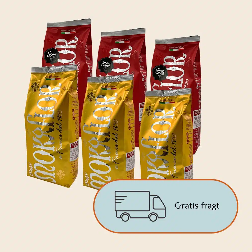 Vores Mokaflor Mix-pakke består af de to storfavoritter fra vores kaffelinje “Mokaflor”: Gran Crema 70/30 og Gold 80/20. Du får 3 kg af hver af de to kaffer, så du selv kan smage dig frem til, hvilken der skal være din favorit.