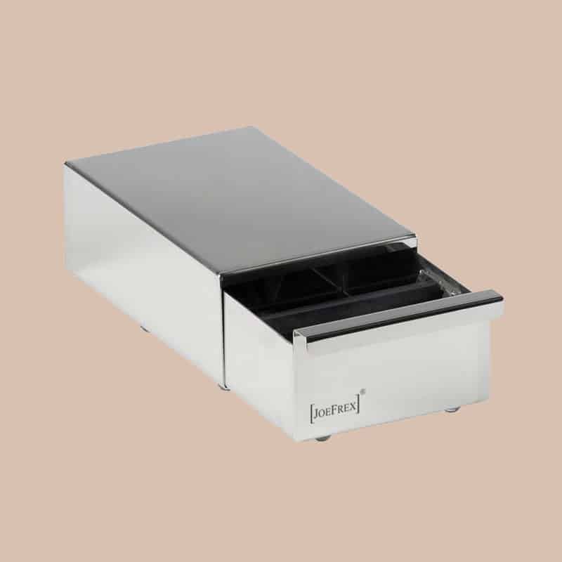 Knockboxen kan med fordel placeres under din kværn, så du sparer bordplads.