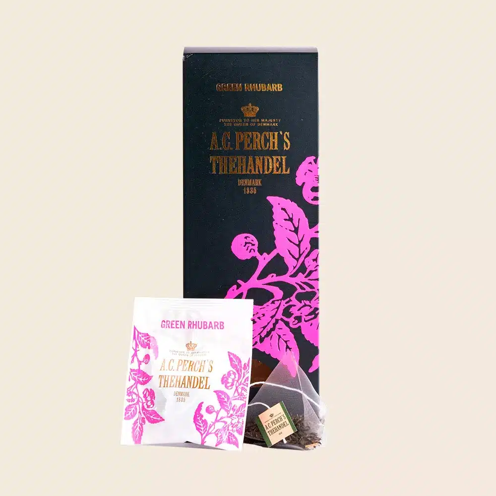 Perch’s green rhubarb. Kinesisk grøn te med dejlig smag af rabarber.