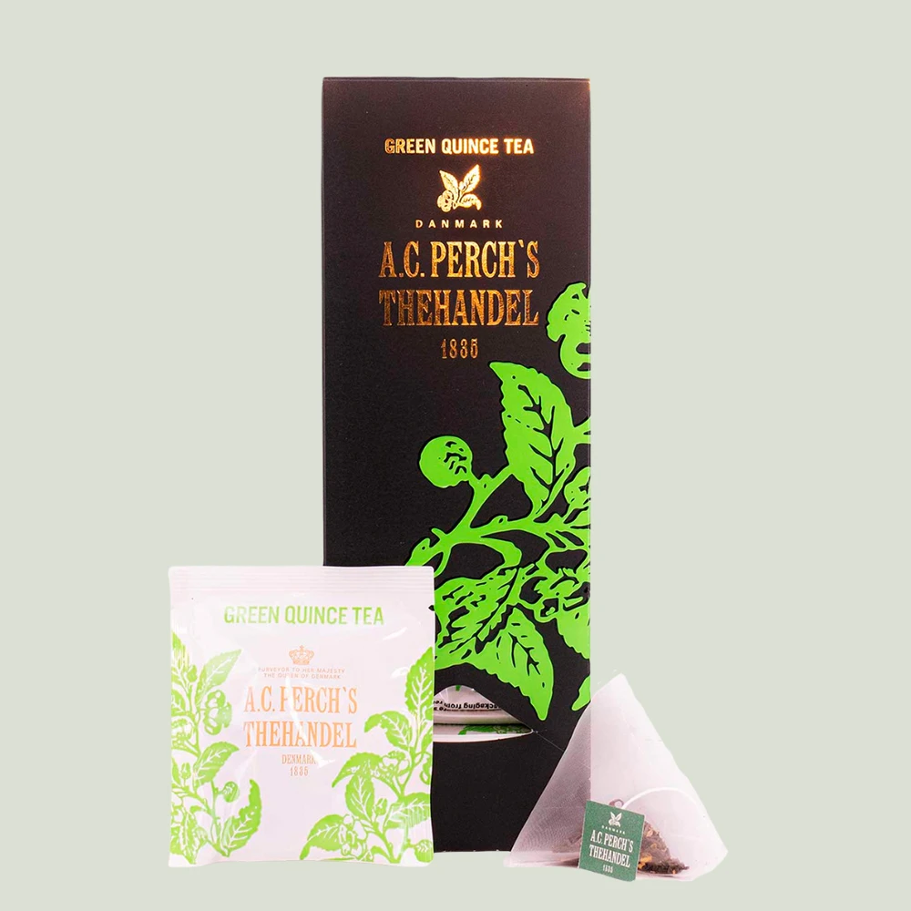 Perch’s Grøn Kvæde er en frisk og frugtig grøn te med aroma af kvæde, æble og hybenblade.