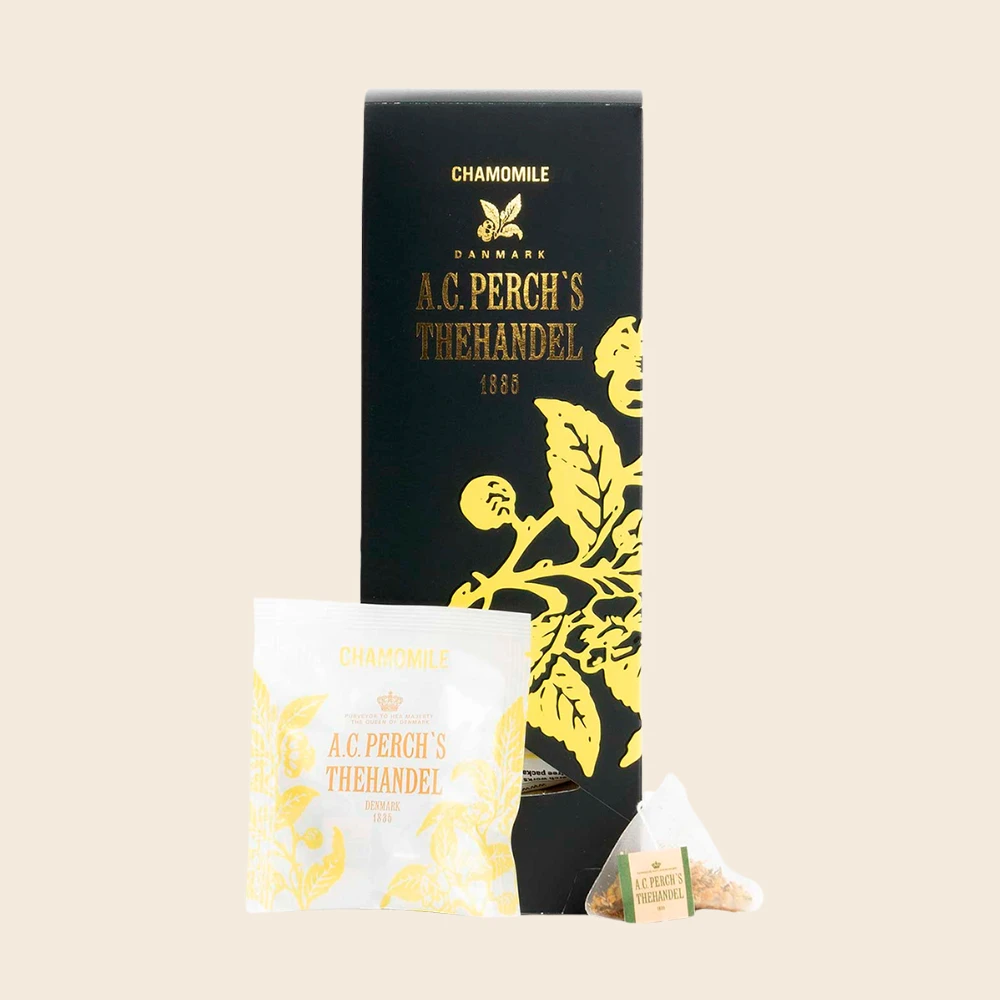 beroligende egenskaber. Perch’s Kamillete er baseret på hele kamilleblomster, som giver teen en rund og let sødlig smag.