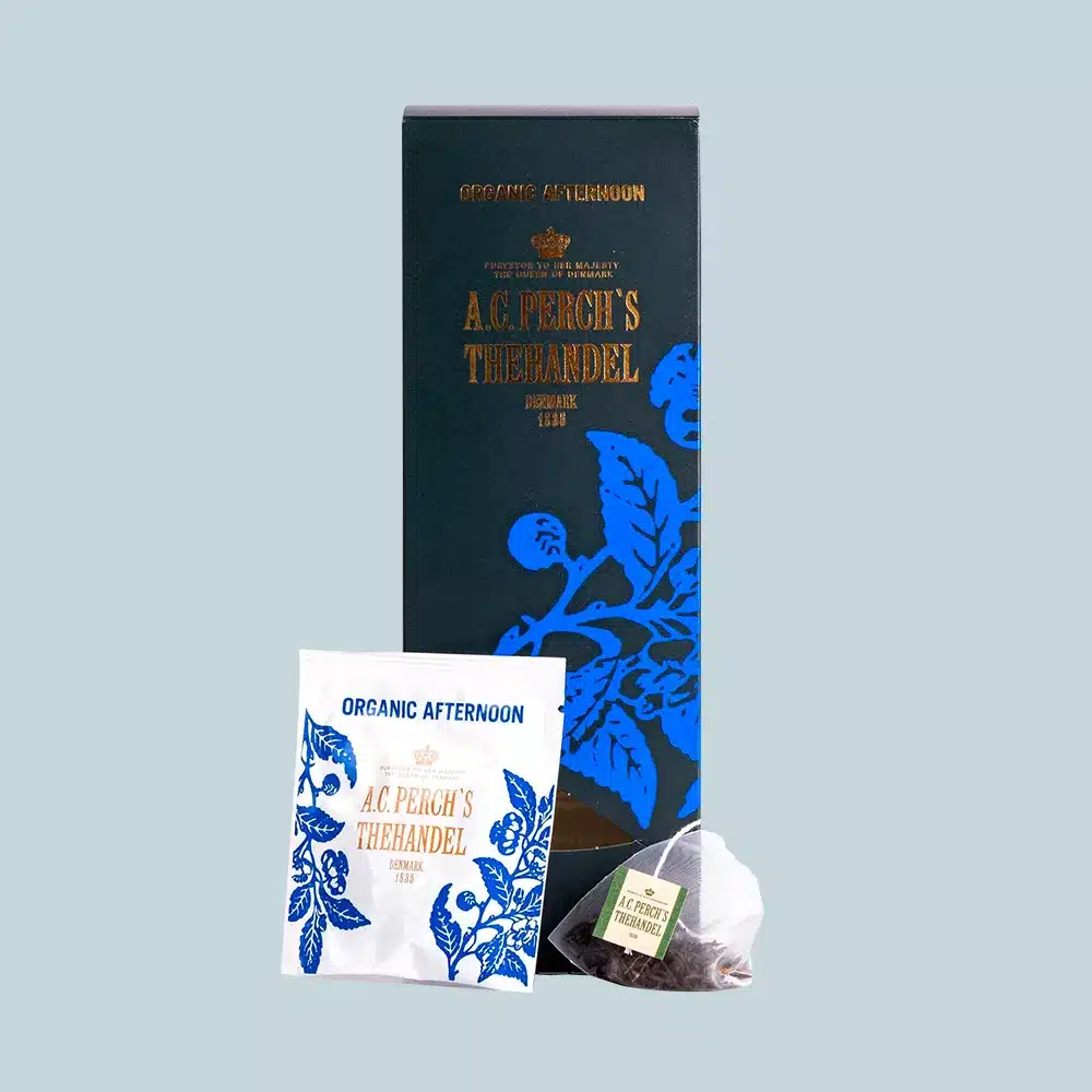 Økologisk Afternoon Tea fra A.C. Perch’s er en Yunnan te, blandet med hvid te med noter af vanilje, hyldeblomst og appelsin.