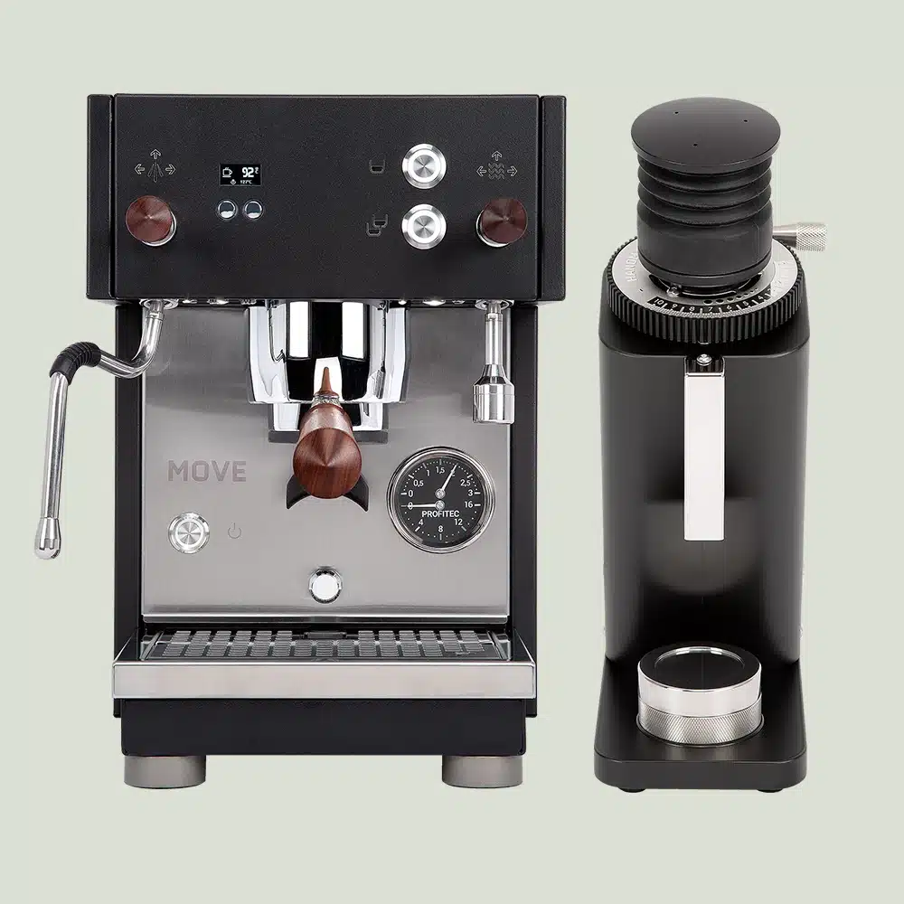 Glæd dig til at løfte din brygning med dette elegante sæt fra Profitec bestående af den populære Profitec Move og den lækre single dose-kværn Profitec Twist SD54.