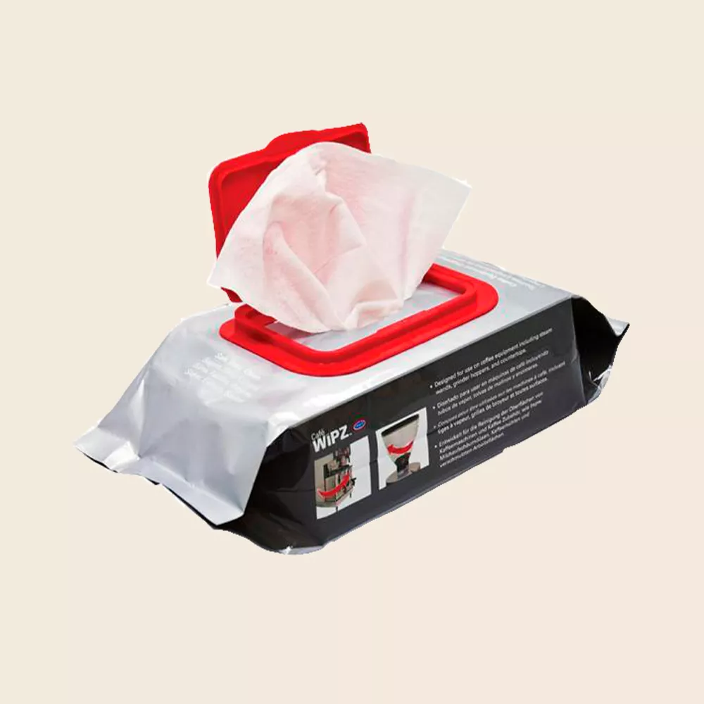 Café Wipz ™ Cleaning Wipes er pre-fugtet, duftfri klude, lavet specielt til sikker rengøring og fjernelse af mælke- og kafferester fra dit udstyr. De opløser desuden nemt hærdet kaffeolie og er fantastiske til rengøring indvendigt i din bønnebeholder. De fjerner nemt gamle olier og andet snavs.
